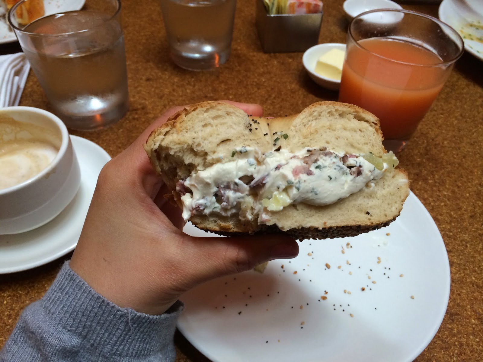 Tony won by choosing the 'Everything bagel' which was packed with shiso cream cheese, ham and tomatillo and was 100 per cent delicious. I had the egg and cheddar bagel bun which was yummy but needed a follow up of the breakfast steamed bun, a bold mix of pork belly (for breakfast! I know!), egg and potato. Delish.